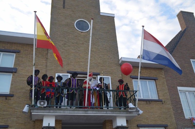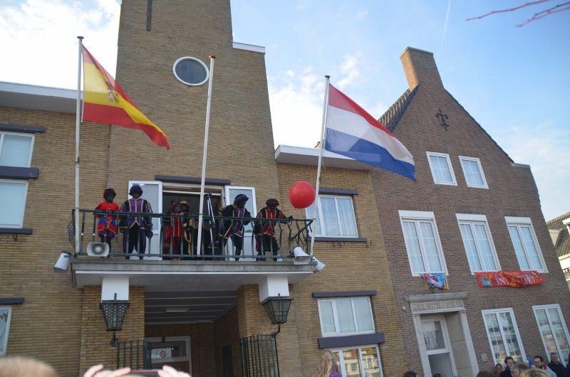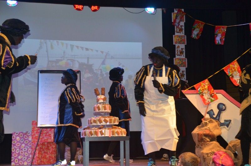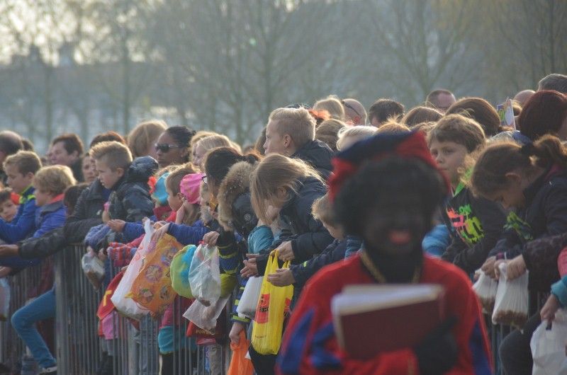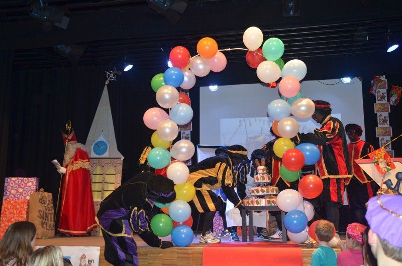 Sint Nicolaas met kleine Pietjes in De Statie voor de kindervoorstelling
